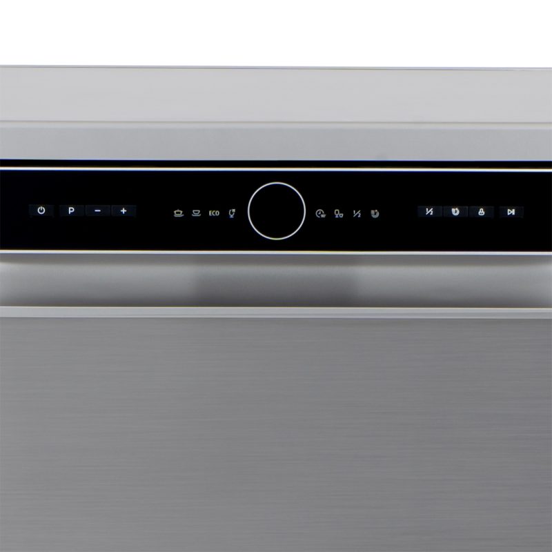 Estética inox con 2 bandejas y cesta de cubiertos. Sistema de control electrónico con 6 programas de lavado y funciones para garantizar el mejor resultado y cuidado de la vajilla.