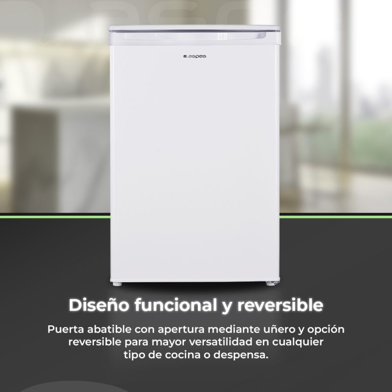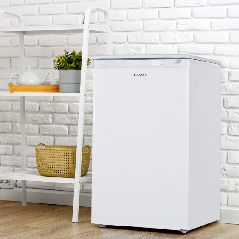 Congelador vertical Aspes, Cíclico. Capacidad 91L, Clase E. Dimensiones: 85cm 55cm 58cm. Color Blanco, Control Manual.