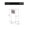 Aire con gas refrigerante R290, modo de funcionamiento solo refrigeración y capacidad de 9000 BTU. Eficiencia energética de refrigeración A. Nivel sonoro de 65 dB.
