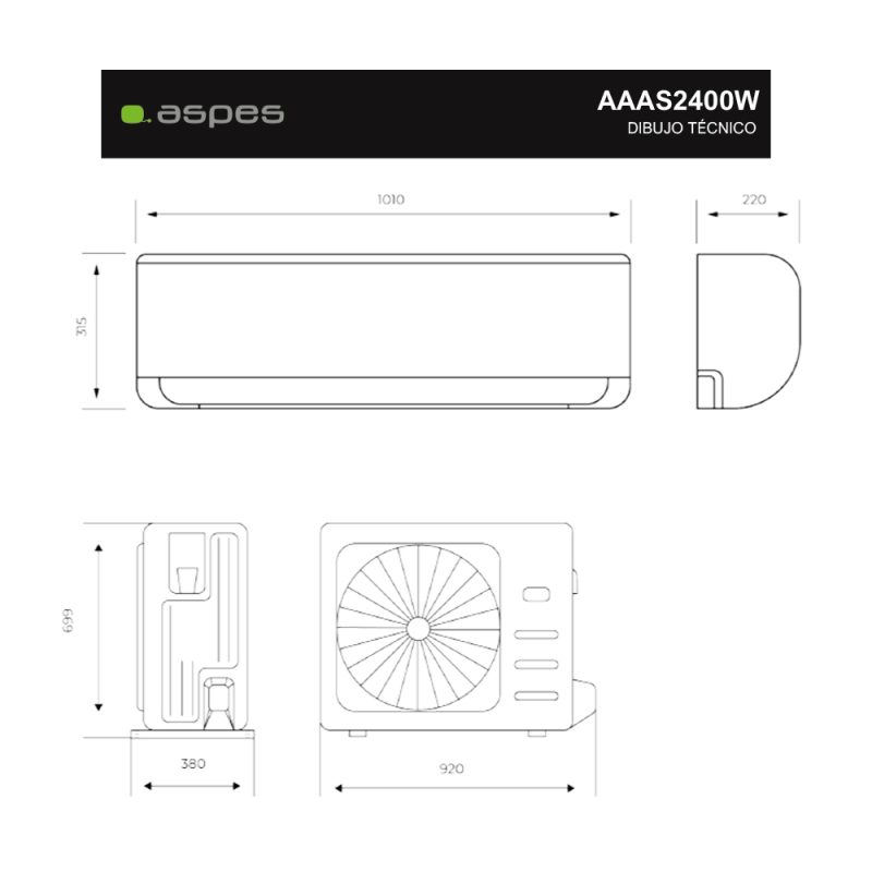 Dimensiones módulo exterior AAAS2400WEX: 699 x 920 x 380 mm