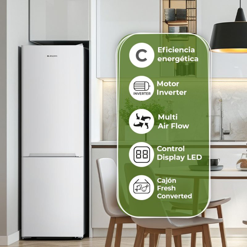Combi Aspes No Frost C 186cm 59,5cm 60cm Blanco Manual Inverter Modo Eco Modo Super Puerta 90º