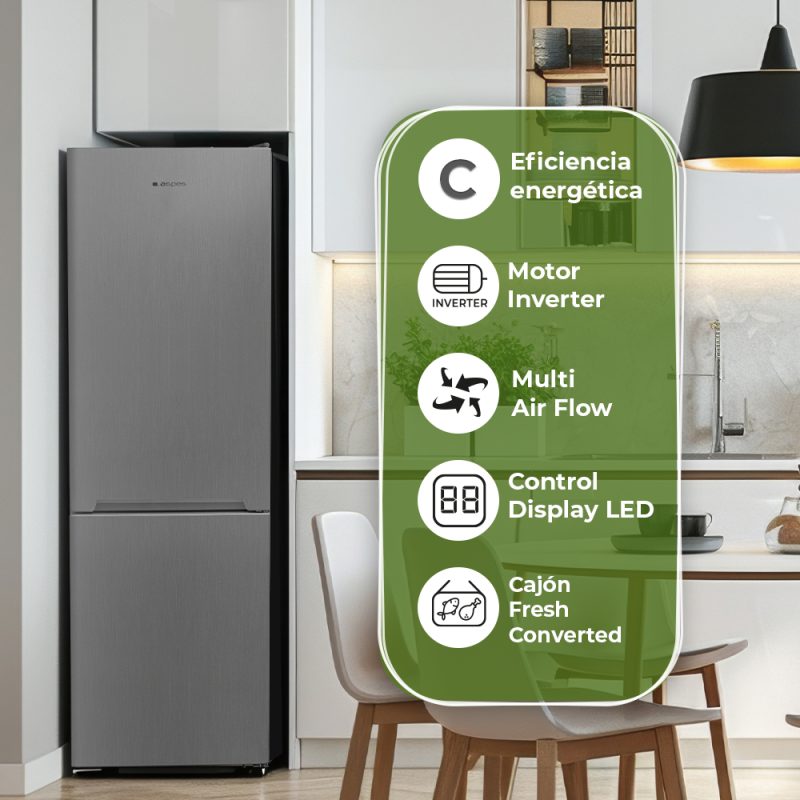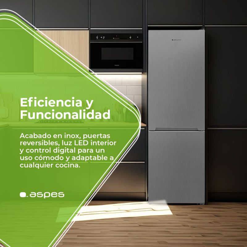 Combi Aspes No Frost C 186cm 59,5cm 60cm Inox Manual Inverter Modo Eco Modo Super Puerta 90º