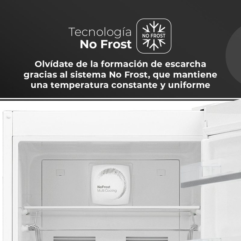 – La tecnología No Frost garantiza una óptima conservación de los alimentos y evita la formación de hielo y escarcha en el frigorífico. Junto con la ventilación Multi Air Flow, consiguen una distribución uniforme en toda la cavidad y un enfriamiento más rápido.