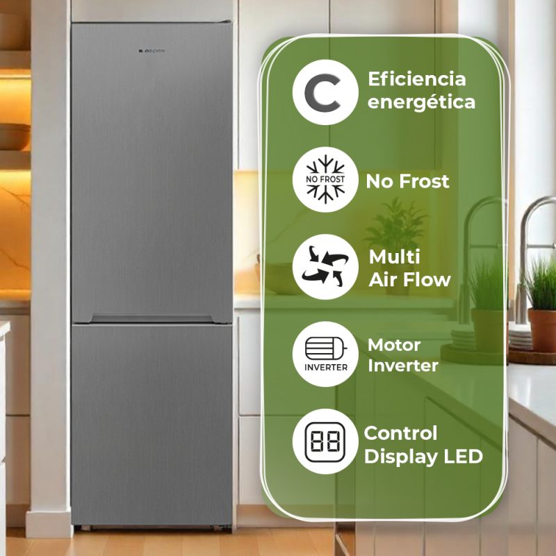 Combi Aspes No Frost C 201cm 59,5cm 60cm Inox Inverter Modo Eco Modo Super Puerta 90º