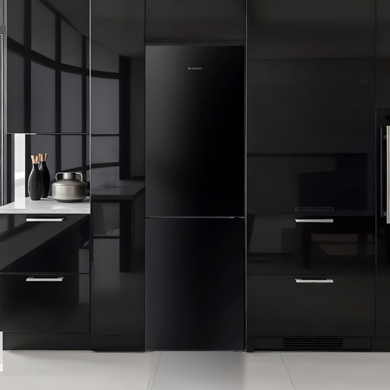 Estética cristal negro con 2 puertas reversibles de abertura tipo uñero y sistema Zero Clearance 90º. Iluminación interior LED. Sistema de control manual, descongelación automática y funciones con las que sacar el mayor rendimiento al frigorífico.