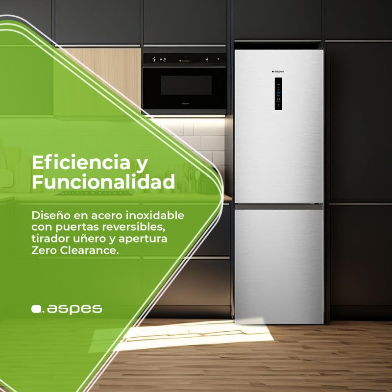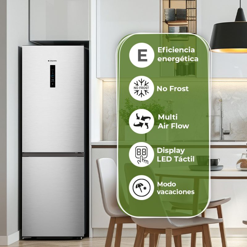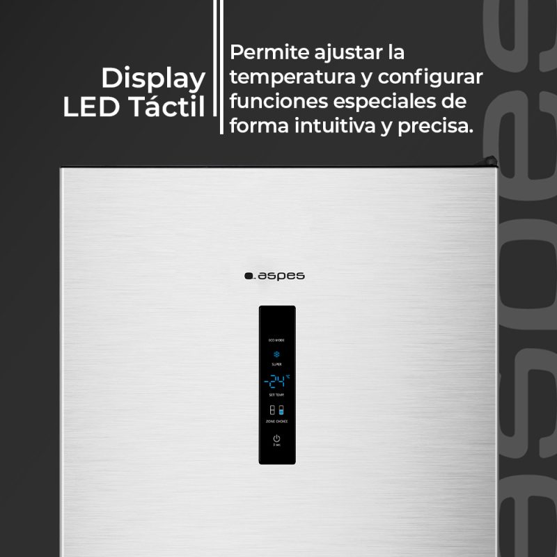 Combi Aspes No Frost E 186cm 59,5cm 59cm Inox Display táctil Modo Eco Modo Super Puerta 90º