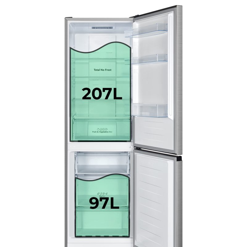 Capacidad total de 306 Litros, con congelador 4 estrellas y múltiples compartimentos para un óptimo almacenaje.