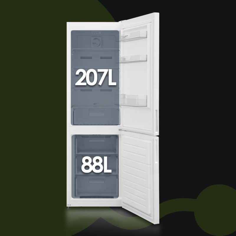 Capacidad total de 295 Litros, con congelador 4 estrellas y múltiples compartimentos para un óptimo almacenaje.