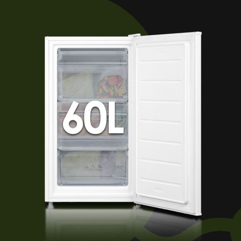 Congelador 4 estrellas de 60 Litros de capacidad con múltiples compartimentos para un óptimo almacenaje.