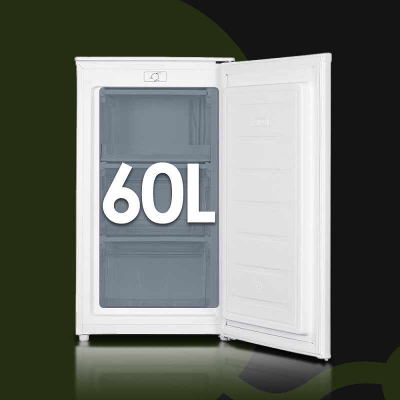 Congelador 4 estrellas de 60 Litros de capacidad con múltiples compartimentos para un óptimo almacenaje.