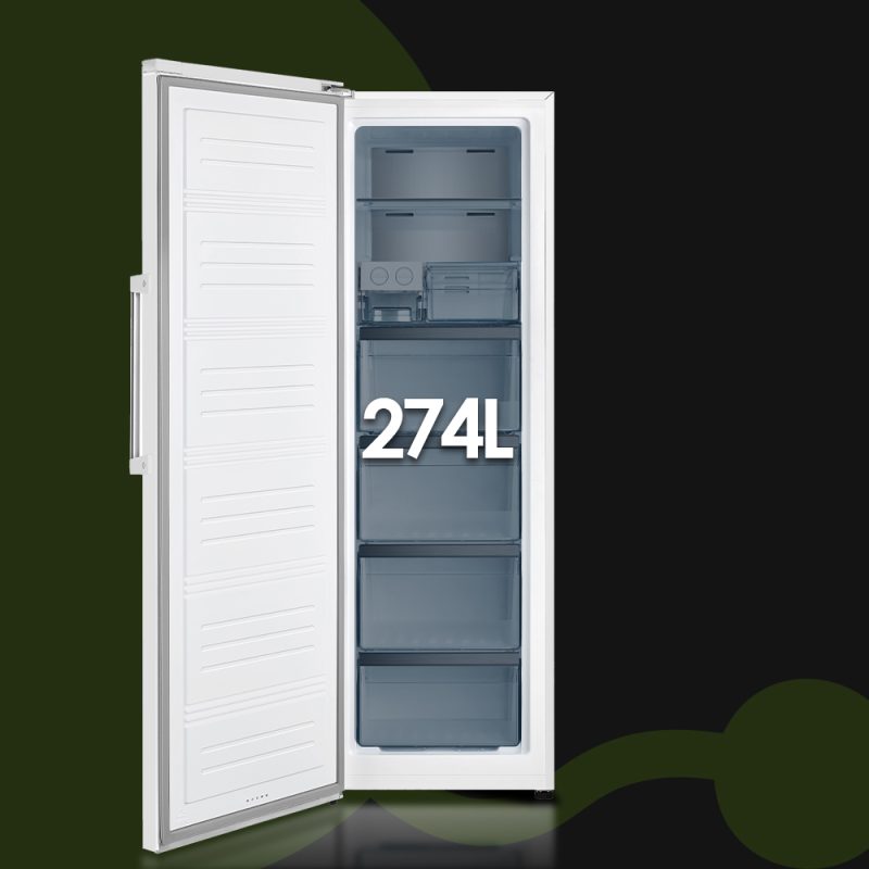 Congelador 4 estrellas de 274 Litros de capacidad con múltiples compartimentos para un óptimo almacenaje.
