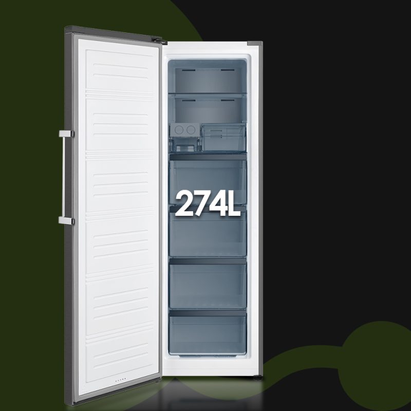 Congelador 4 estrellas de 274 Litros de capacidad con múltiples compartimentos para un óptimo almacenaje.