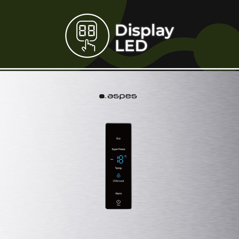 Congelador vertical Aspes No Frost 274L E 185,5cm 59,5cm 65,1cm Inox Display táctil Inverter