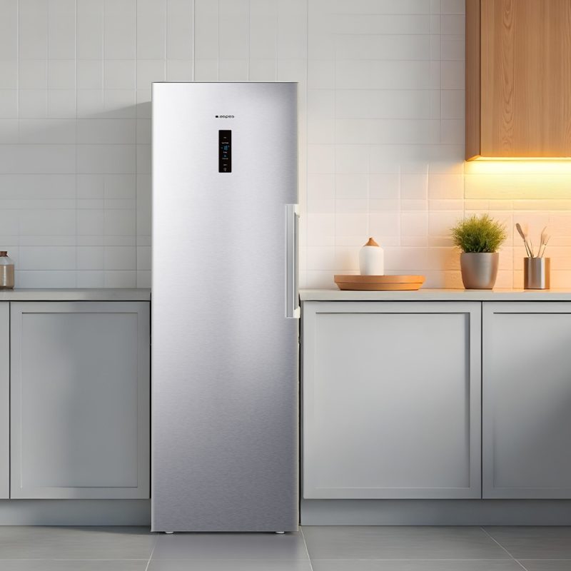 Estética inox con 1 puerta reversible de abertura con tirador y sistema Zero Clearance 90º. Iluminación interior LED. Sistema de control táctil con Display LED, descongelación auto y funciones con las que sacar el mayor rendimiento al congelador.