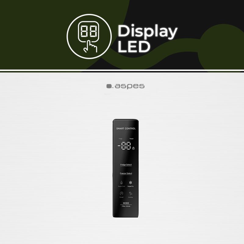 Frigorífico 2 Puertas Aspes, No Frost. Clase E. Dimensiones: 183,6cm 75cm 70cm. Color Blanco, Control con Display táctil. Motor Inverter.