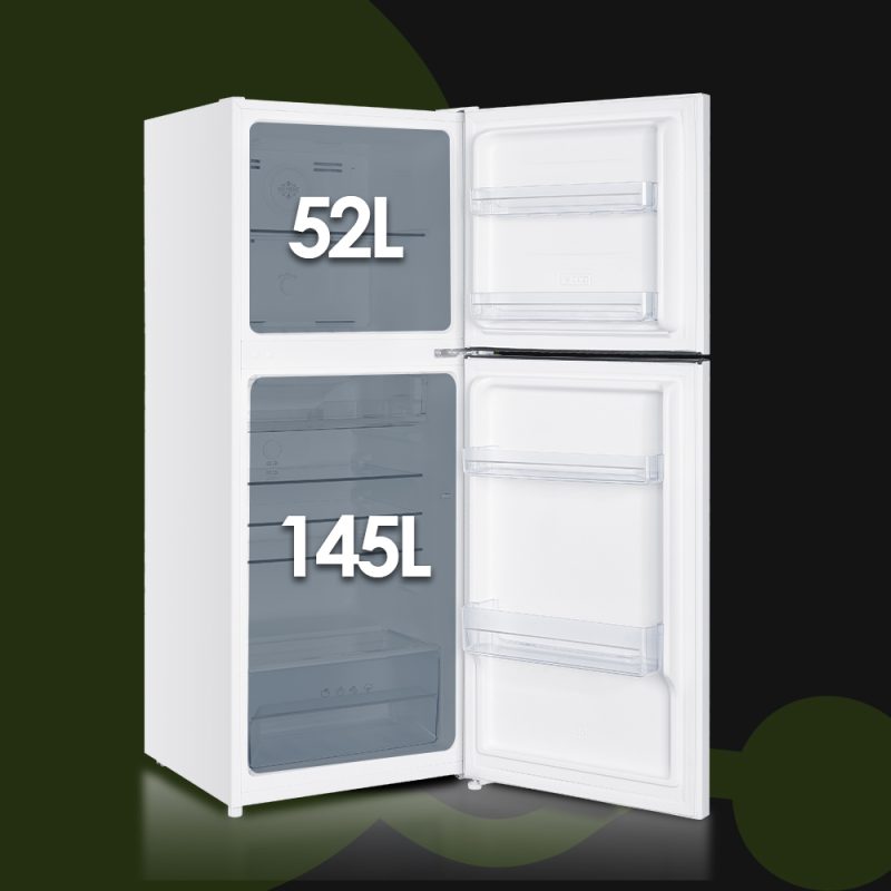 Capacidad total de 197 Litros, con congelador 4 estrellas y múltiples compartimentos para un óptimo almacenaje.