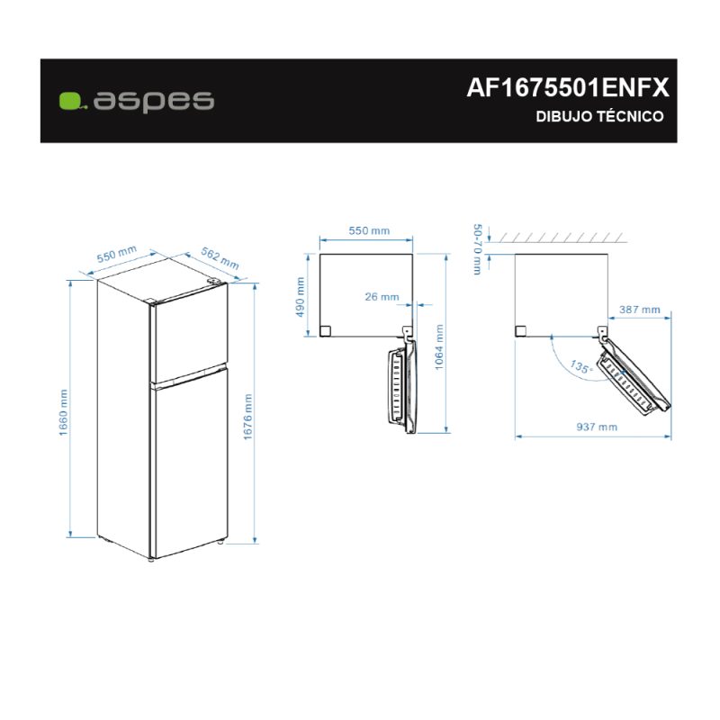 Frigorífico Aspes No Frost E 167,6cm 55cm 56,7cm Inox Electrónico Inverter