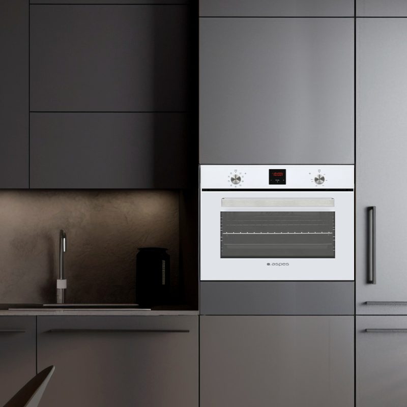 Horno Multifunción Aspes 50L A 45,5cm 59,5cm 57,5cm Cristal blanco Display 9P Turbo