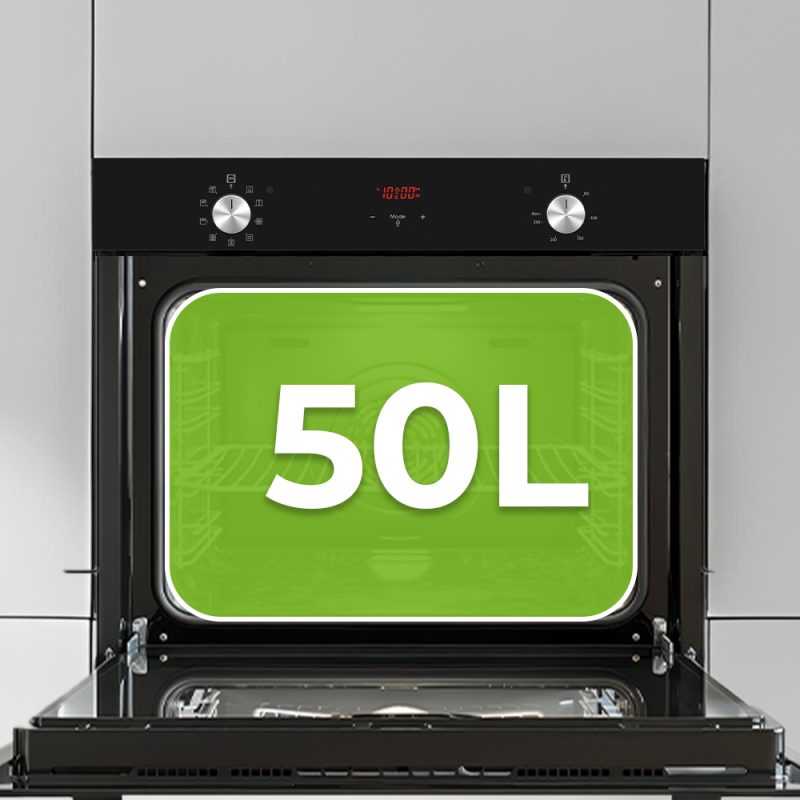 Horno eléctrico de 50 Litros de capacidad y potencia total 2600 W. Eficiencia energética A.
