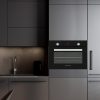 Estética de cristal negro con puerta de doble cristal. Dispone de soporte metálico para las bandejas e iluminación interior. Panel de control electrónico con Display LED y mandos estándar, con termostato . Ofrece 9 programas de cocción y diversas funciones para obtener el mayor rendimiento y facilitar el proceso de cocción.