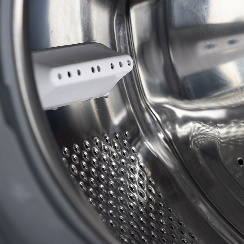 Estética blanca con puerta transparente, tambor de acero inoxidable y chasis Boomerang antivibraciones. Sistema de control electrónico con Display LED con 15 programas de lavado y funciones para garantizar el mejor resultado y cuidado en tu colada.