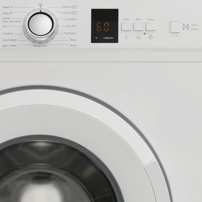 Estética blanca con puerta transparente, tambor de acero inoxidable y chasis Boomerang antivibraciones. Sistema de control electrónico con Display LED con 15 programas de lavado y funciones para garantizar el mejor resultado y cuidado en tu colada.