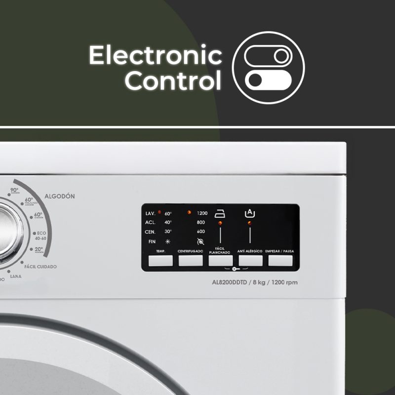 – La lavadora cuenta con el Sistema Eco-logic para garantizar un ciclo efectivo y respetuoso con el medio ambiente. A través de unos sensores, detecta automáticamente la cantidad de ropa introducida en el tambor y reestablece la duración y el consumo.