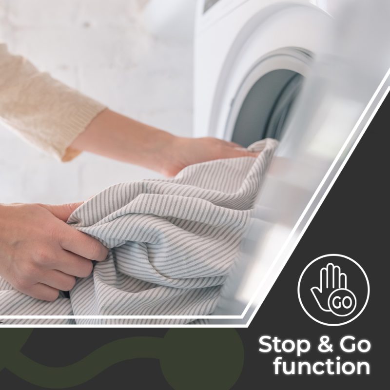 – Gracias a la función Stop&Go podrás añadir esa prenda olvidada. Simplemente, pausa el programa y , tras seleccionar de nuevo la función, este se reanudará justo donde se quedó.