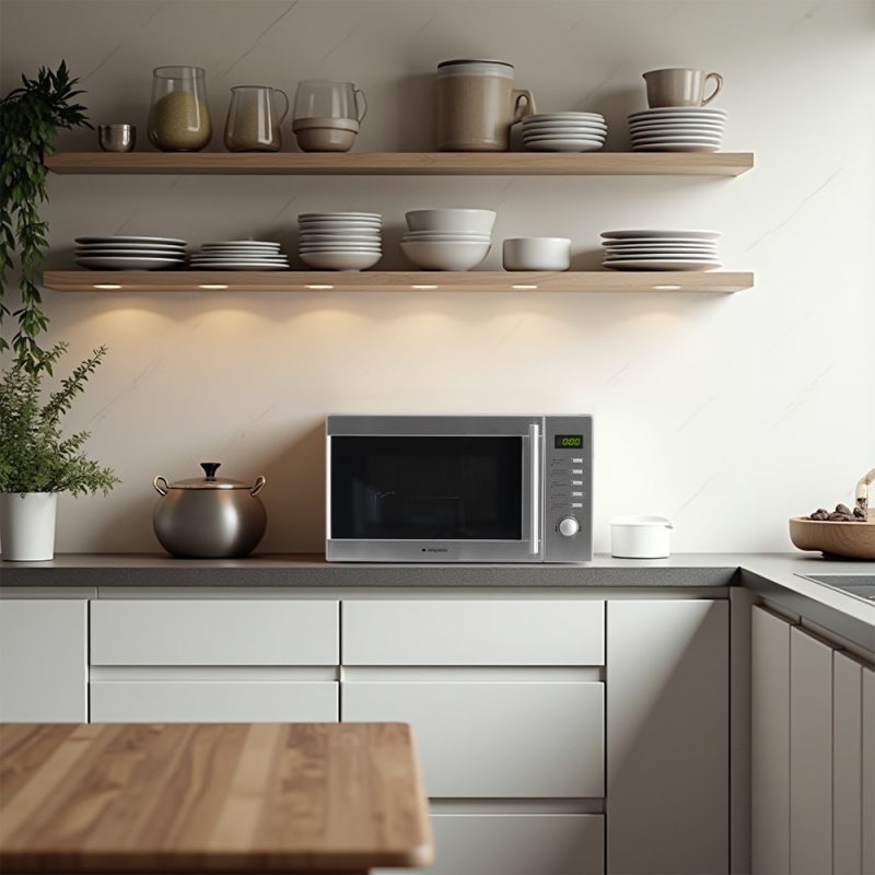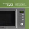 Estética inox con puerta inox y abertura con tirador. Cavidad esmaltada en gris con iluminación LED y plato giratorio de cristal. Sistema de control eléctronico con Display LED y temporizador digital. Ofrece 5 niveles de potencia, Grill, 2 opciones de cocina combinada y distintas funciones para obtener el mayor rendimiento y facilitar el proceso de cocción.