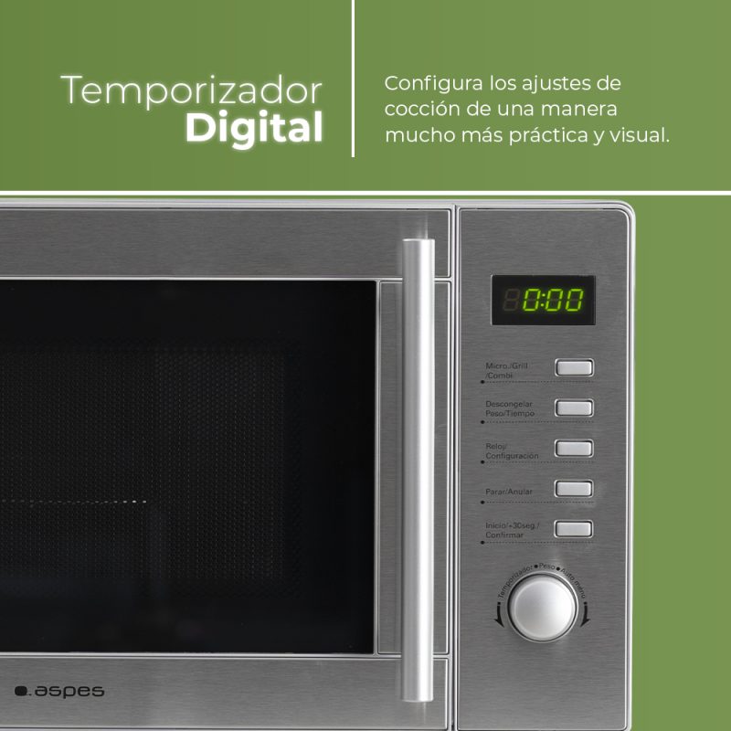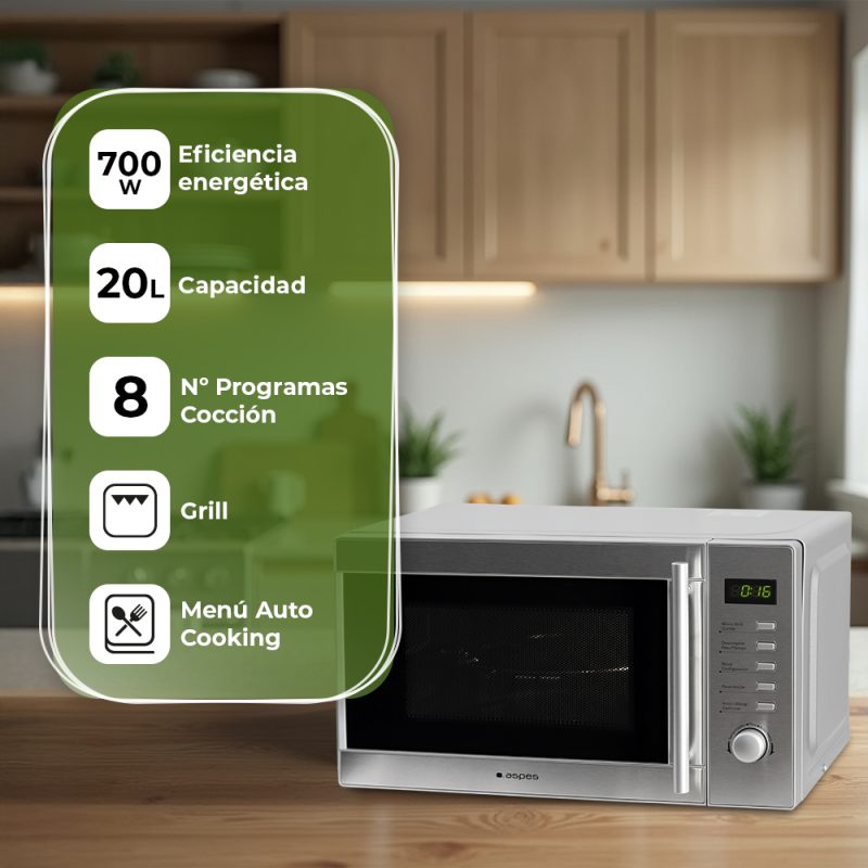 Microondas Grill Aspes 20L 700W 25,8cm 44cm 35,6cm Inox Display Auto Cooking