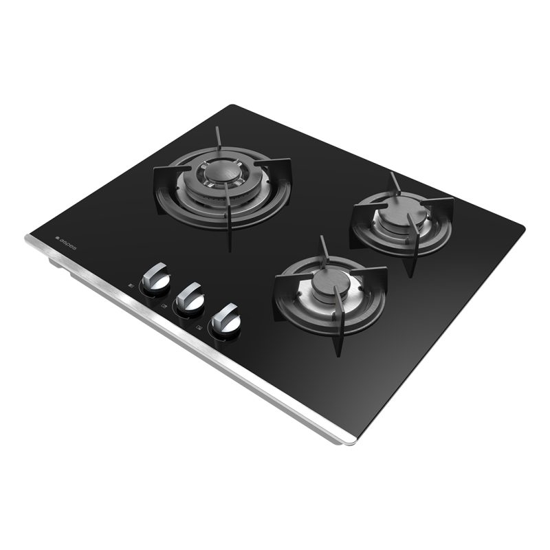 Placa preparada para gas butano con potencia total de 6050 W. Incluye Kit de conversión a gas ciudad. Cuenta con 3 quemadores de distinto tamaño, uno de ellos es quemador WOK de triple llama.