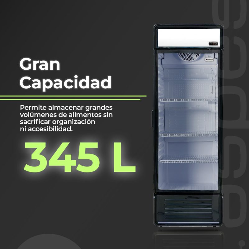 Capacidad total de 345 Litros y múltiples compartimentos para un óptimo almacenaje.