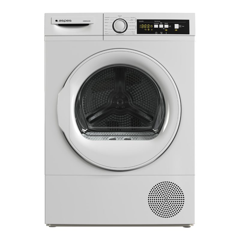 Secadora Bomba calor Aspes 8kg A++ 84,8cm 59,7cm 56,5cm Blanco Display Nivel Secado Puerta XXL Luz