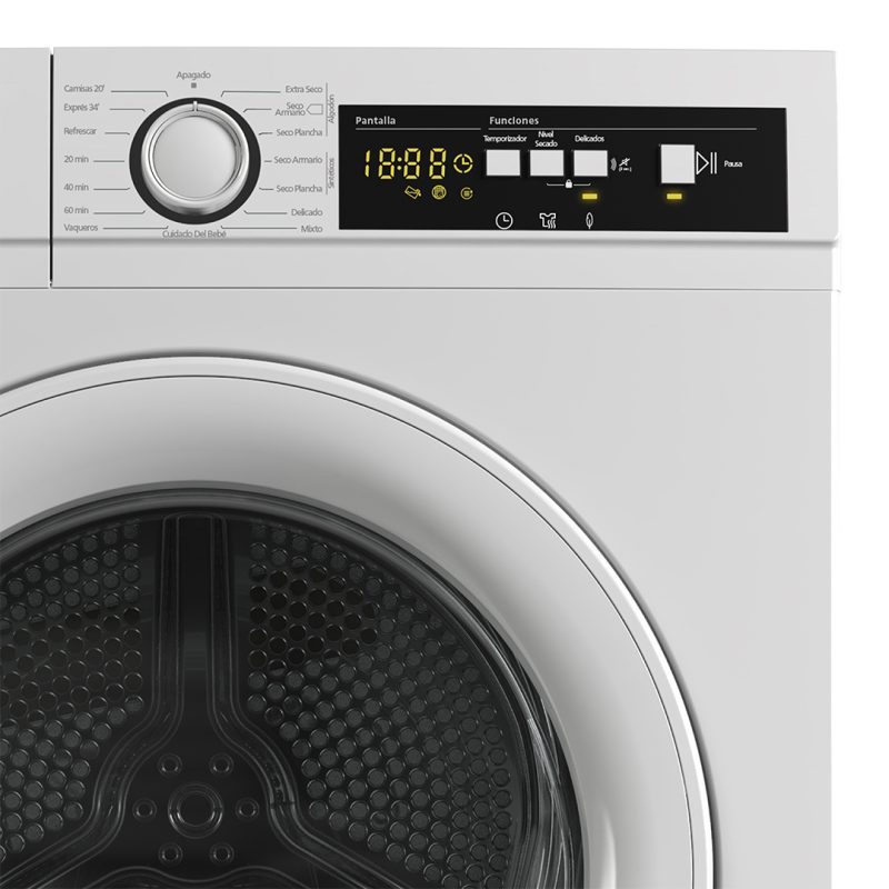 – Las secadoras de bomba de calor son las más eficientes del mercado y no requieren de ninguna instalación por lo que pueden colocarse en cualquier estancia. Cuenta con un circuito refrigerante que se encarga de calentar y, a la vez, de condensar la corriente de aire, aprovechando el aire ambiente durante todo el ciclo.