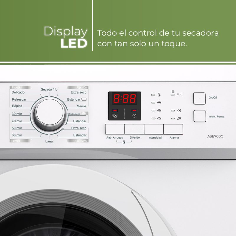 Secadora Evacuación Aspes 7kg C 84cm 59,5cm 55,5cm Blanco Display Antiarrugas Nivel Secado Tapa/P
