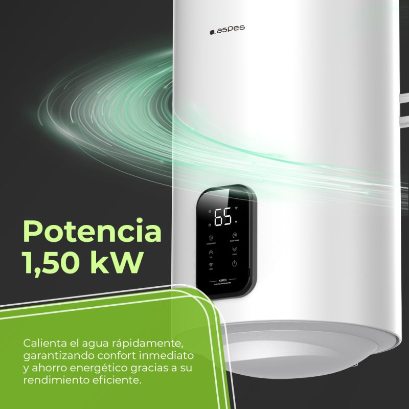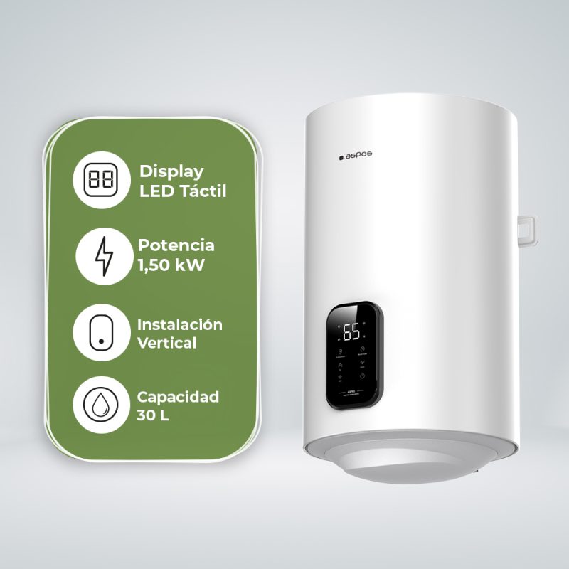 Termo eléctrico Aspes Slim Vertical 30L 1500W B 60cm 34cm 37,5cm Blanco Display táctil