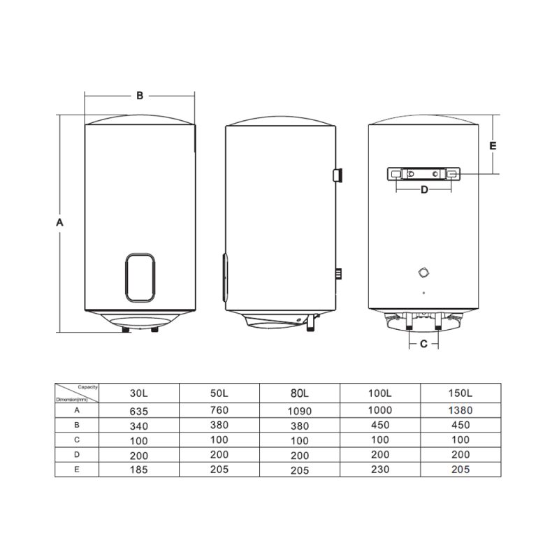 Termo de instalación vertical con 1 tanque de 30 Litros de capacidad y potencia total 1500 W. Eficiencia energética B y máximo nivel sonoro 15 dB.