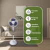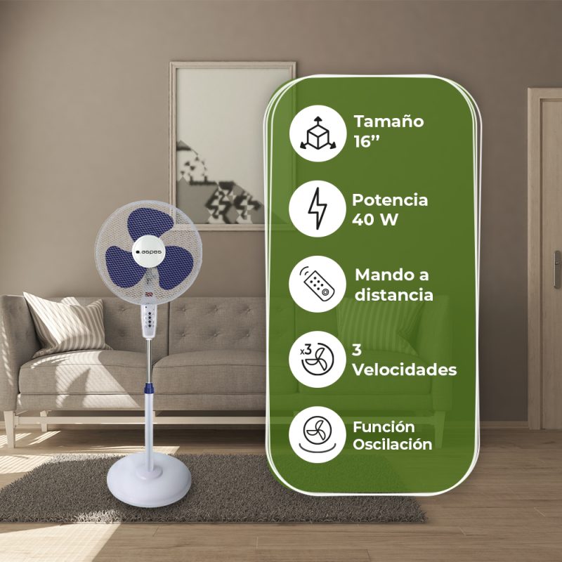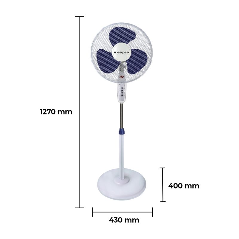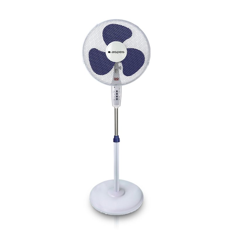 “Ventilador Pie Aspes 16″” 40W Blanco y azul Electrónico Mando 3V Temporizador Oscilación Multip.”