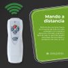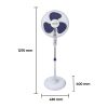 Estética blanca y azul con base redonda. Sistema de control electrónico con mando a distancia y 3 velocidades.